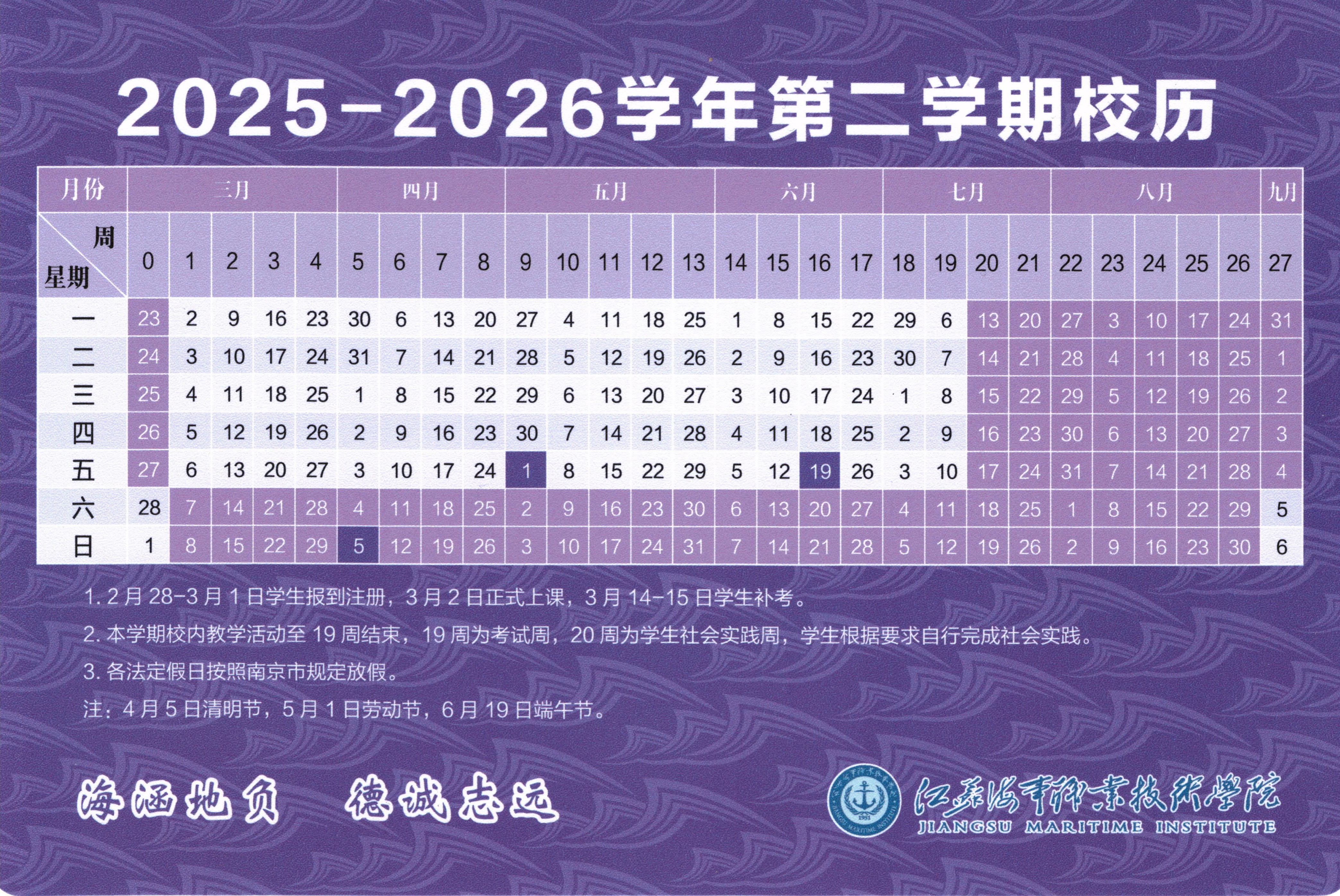 2026年春季学期校历(2025-2026-2学期)